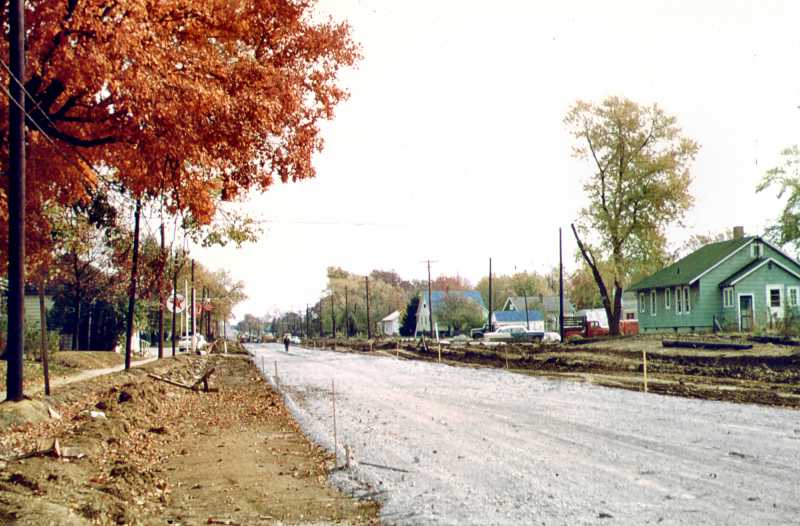 Corner of Seventh Street looking east along Lincoln Avenue in October, 1959. When Lincoln Street was widened they took one whole row of houses off on the south side of the street so that they could make it a four-lane highway and that's what happened, you see.